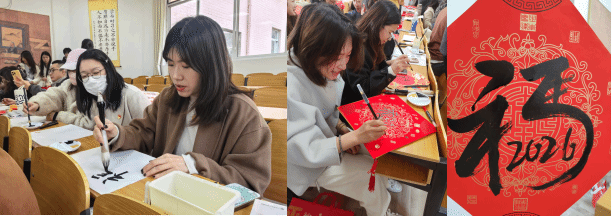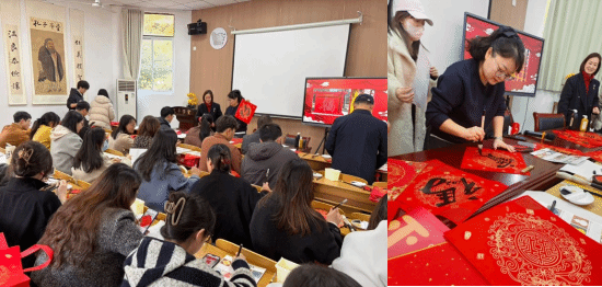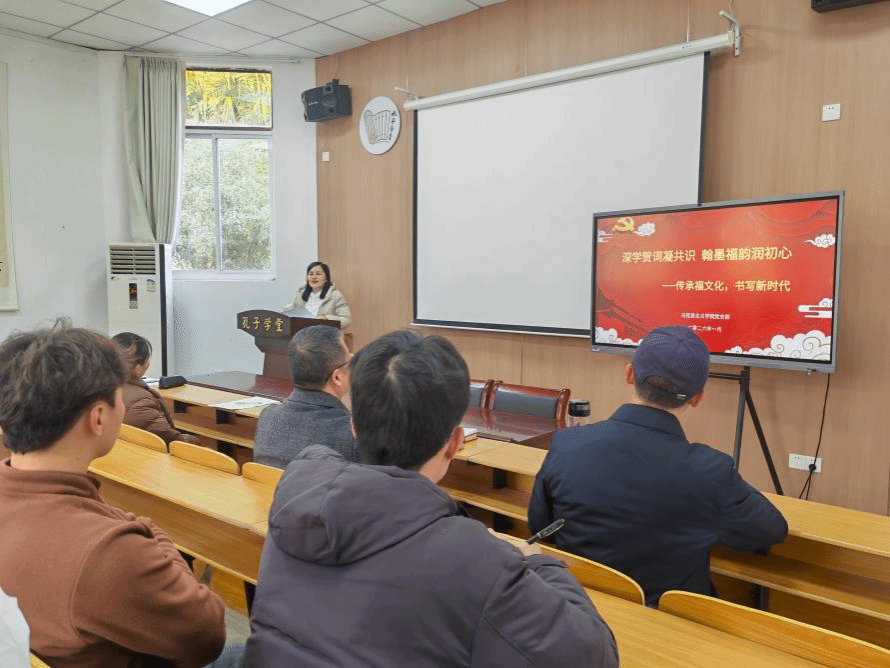 为深入学习贯彻习近平总书记2026年新年贺词中的核心精神,将学习贺词精神深刻领会党的初心使命与传承发展中华优秀传统文化相结合,进一步增强思政教育的感染力1月15日下午,马克思主义学院全体党员教师在孔子学堂开展“深学贺词凝共识 翰墨福韵润初心”迎新春、学贺词、写福字主题党日活动