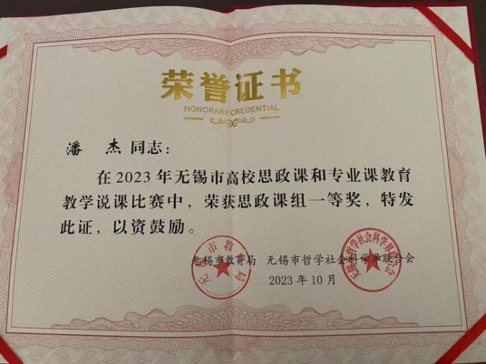 为了弘扬党的二十大精神,落实立德树人根本任务,无锡市举办高校思政课程与课程思政说课大赛。来自全市各高校的优秀选手齐聚一堂,展开激烈角逐!我院潘杰老师奋勇争先,取得思政课组一等奖佳绩。