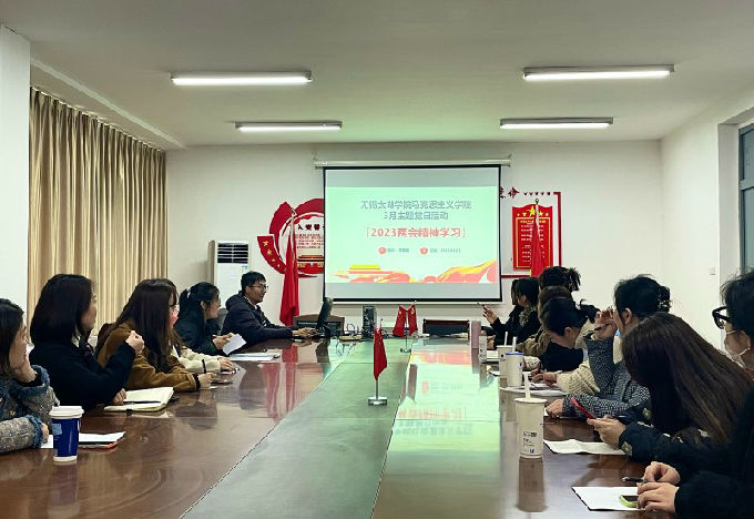 为深入学习贯彻全国两会精神,3月23日下午,马克思主义学院党支部在13号楼601开展主题党日活动,专题学习2023年全国两会精神。会议由支部书记荣沁瑜主持,纲要组全体教师筹划,支部全体党员参加。