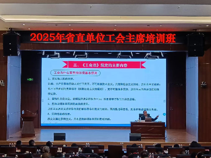 为贯彻实施好《工会法》,提升工会主席依法履职能力,近日,湖南省直工会主办了省直单位工会主席培训班,12月3日,我院徐德刚教授应邀为该班授课。