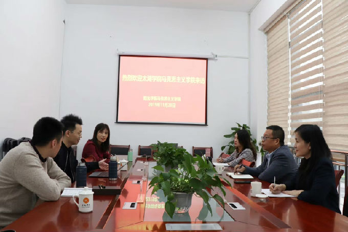 11月28日上午,交流活动在阳光学院工A105会议室进行。首先,阳光学院马克思主义学院杜云副院长对无锡太湖学院马克思主义学院来访表示热烈欢迎,杜副院长介绍了阳光学院马克思主义学院的基本架构、发展过程、发展理念及课程建设情况,着重分享了获得省重点建设马院在教学科研方面的经验以及创设国学研究院的心得及感受。然后,阳光学院马克思主义学院基础课教研室吴昊主任分享了他指导“大学生创新创业大赛”多次获奖的宝贵经验。刚刚获得福建省高校教学大赛二等奖的郭翠翠老师分享了她备赛、参赛经验及获奖感悟。最后,陆副院长介绍了我院课程建设概况,双方马院教师就民办高校思政课建设及发展过程中存在的问题及如何更好发挥新时代思政课立德树人根本作用进行了深入探讨,另外阳光学院采取多种措施激励思政教师提升个人教学科研能力的做法取得了突出成效给予我院考察团很多启发。
