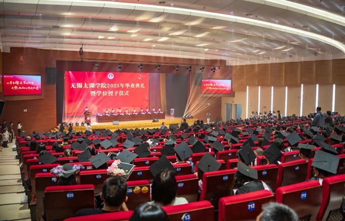 六月荷风,梦想启航。6月22日,无锡太湖学院2025年毕业典礼暨学位授予仪式在工科实验大楼报告厅隆重举行,共同庆祝5829名“太湖学子”圆满完成学业之旅、踏上人生新征程。学校党委书记孙玉坤,校长金成,执行校长李廉水,校领导吴健荣、丁涛、陈鹏飞、阙明坤、毛照红、郑斌出席。各二级学院、相关职能部门负责人,教师代表、毕业班辅导员、毕业生代表及家长代表参加。活动由校党委副书记丁涛主持。